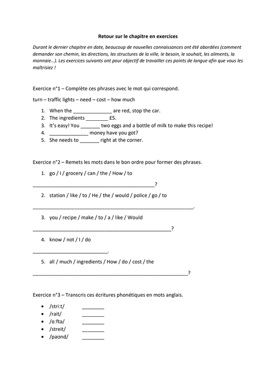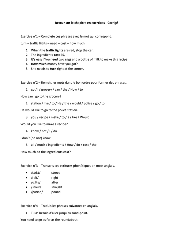 Retour Sur Le Chapitre En Exercices Corrigé 11