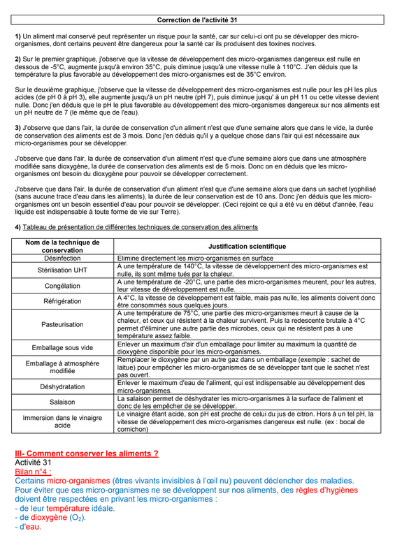 - Semaine n°13 (du 22/06 au 26/06) : Cette semaine les cours reprennent pour les 6emes mais seulement jeudi et vendredi, je vous demande donc de réaliser en début de semaine la fiche n°31 sur les méthodes de conservation des aliments. Allé tenez le coup, courage, on est presque au bout du programme !