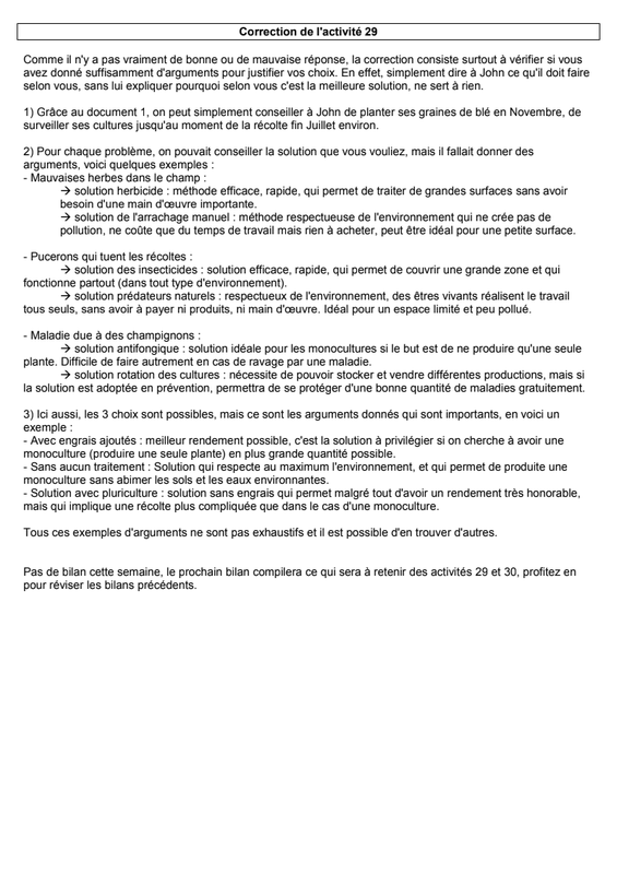 - Semaine n°11 (du 08/06 au 12/06) : On commence le grand II du chapitre où on va découvrir quelques moyens de production alimentaire. Cette activité n°29 a pour but de vous entrainer à argumenter. Il n'y a pas de bonne ou de mauvaise réponse dans l'activité, mais vous devrez rédiger une lettre dans laquelle vous devez essayer de convaincre, avec des arguments, une personne. C'est un travail à me renvoyer (si possible dans le casier de l'ENT) !