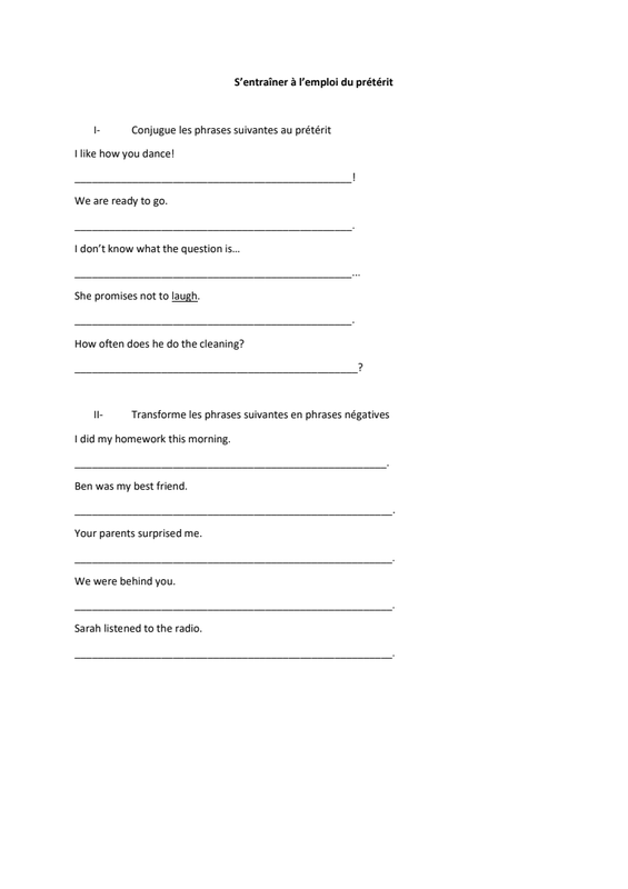 S'Entraîner À L'Emploi Du Prétérit 18